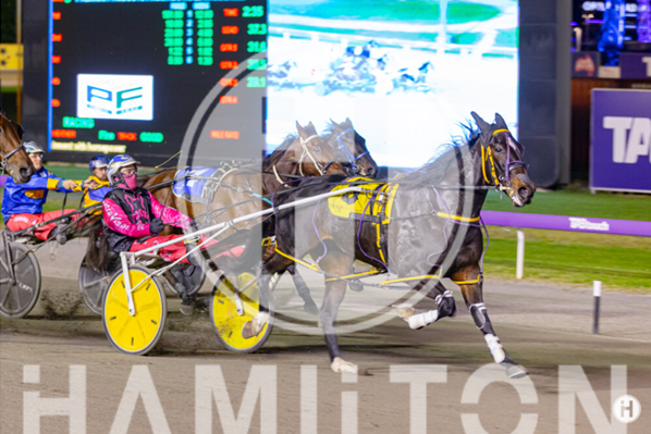 Ken Casellas | Photo: Hamilton Content Creators Champion reinsman Gary Hall Jnr notched his 100TH winner for the year when he drove Bromwich to an effortless victory in the Talking Trots…