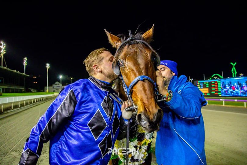 The only dark cloud over Friday night’s joyous celebration is that De Campo will be unable to drive Menemsha in the Golden Slipper. At midnight he began a 16-day suspension for causing interference in a race the previous Friday night.