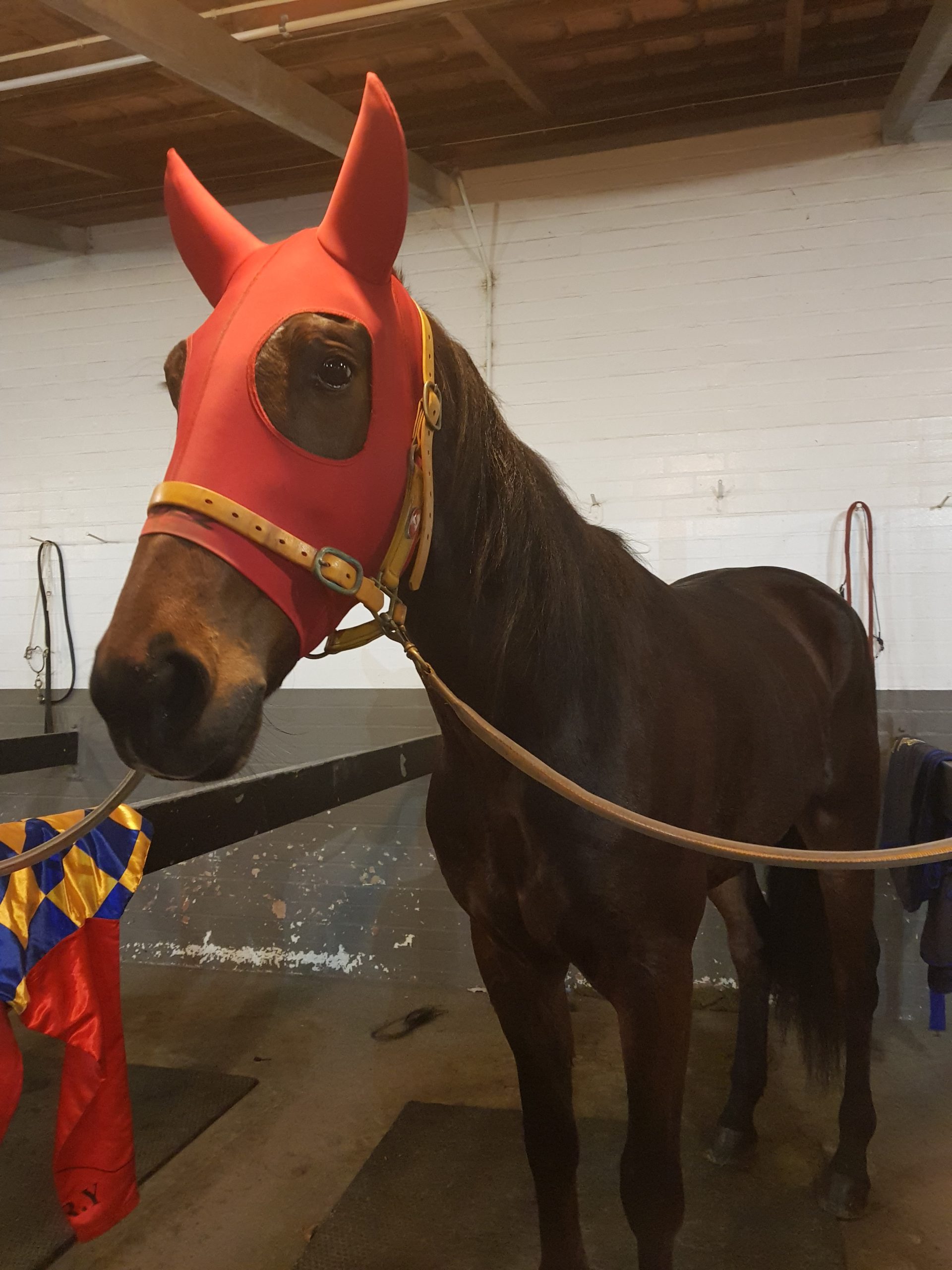 “The starting procedure here in stands is a bit different to Melbourne (where he did his early racing) where horses have a bit more room in the move-up. Patched had been trying to look around.